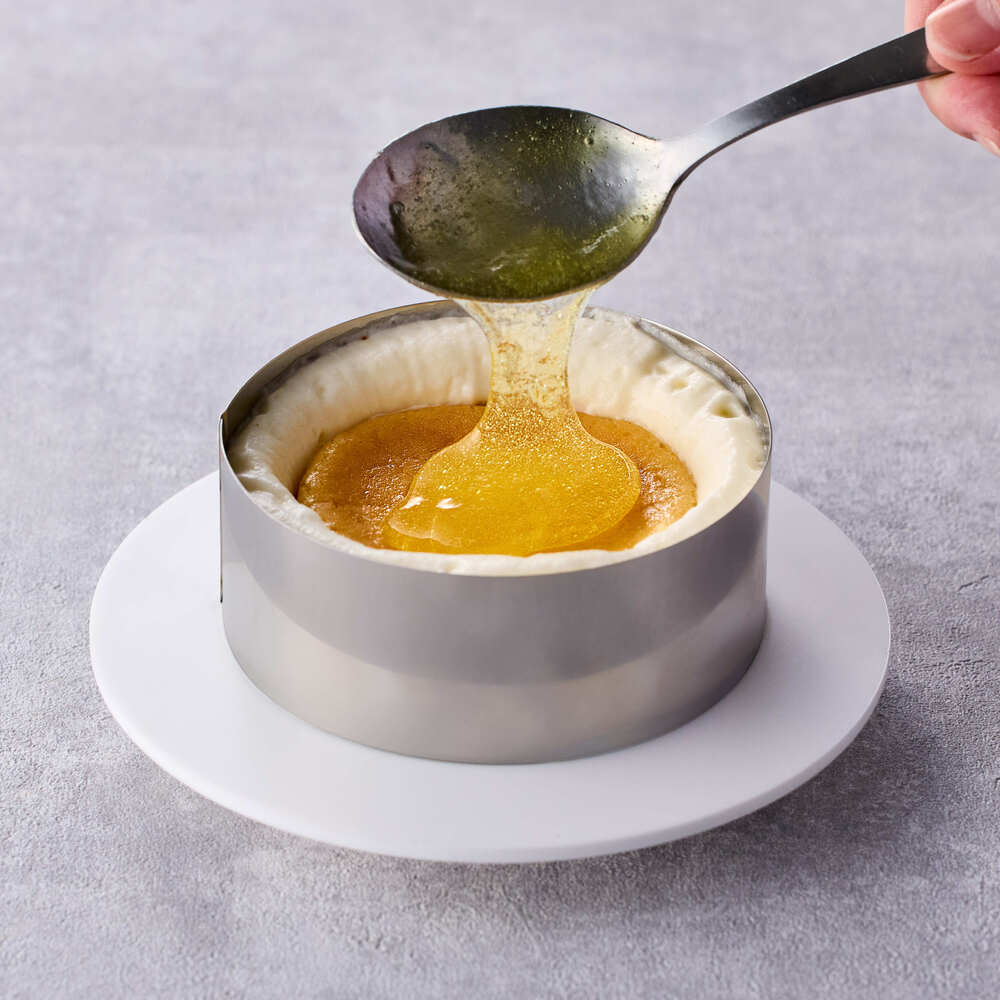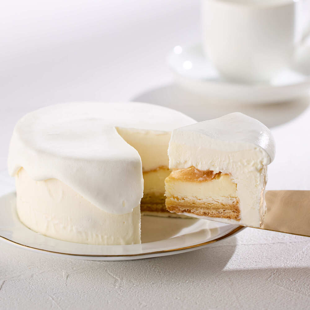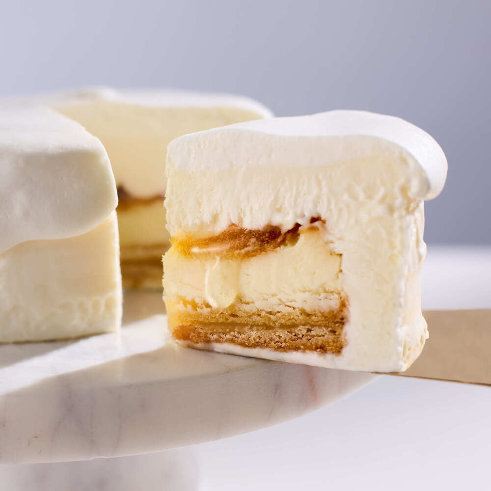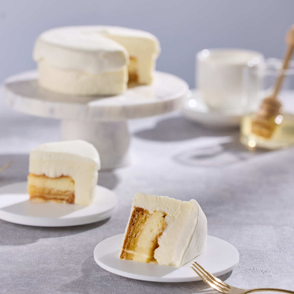 雪のように真っ白なケーキにナイフを入れると、中から黄金色のはちみつがとろりとあふれ出します。